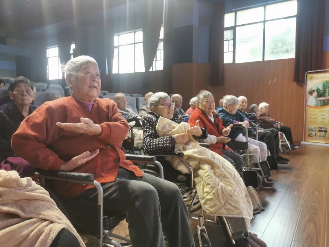 活动中,老人们全神贯注观看演出,节目现场不时响起阵阵掌声。这是属于老人们自己的节日,脸上都洋溢着幸福的笑容。
