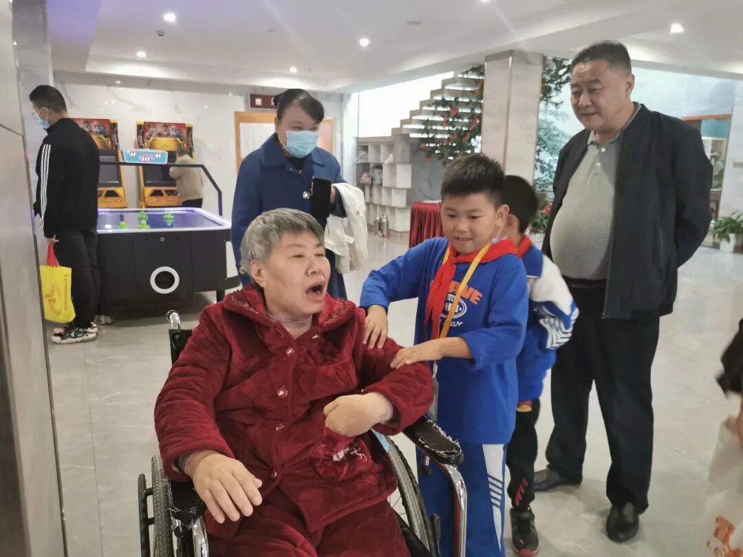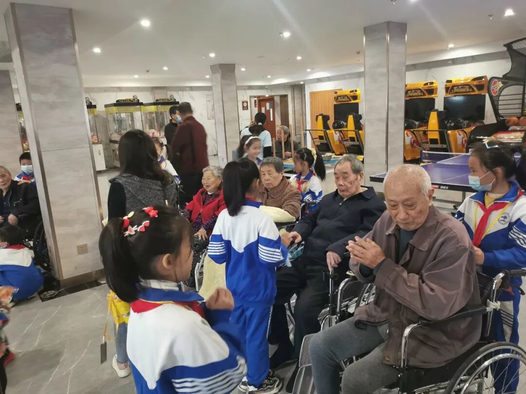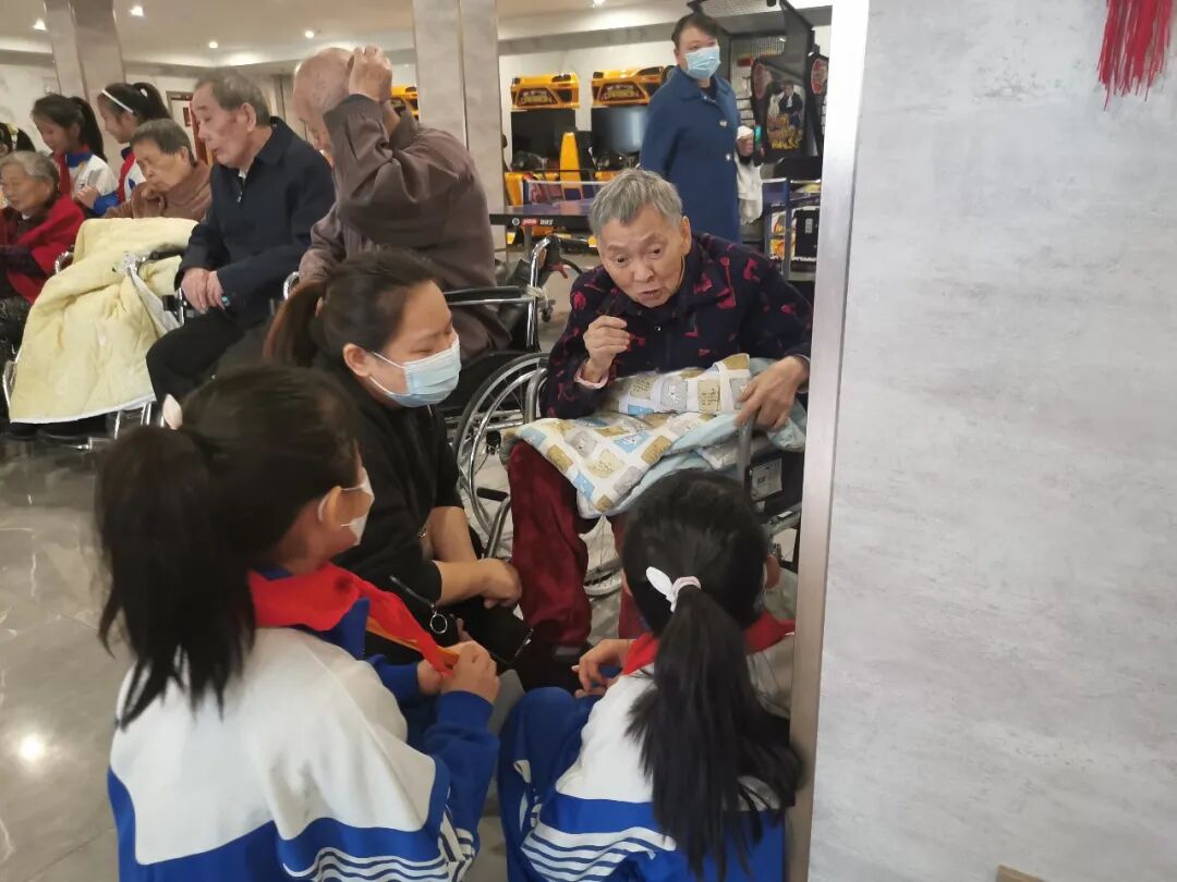 师生们在工作人员的引导下参观了敬老院环境,了解了老人们在这里的生活状态。爷爷奶奶们一直在夸孩子们真有礼貌,感谢孩子们给他们带来了欢乐的时光,老人们纯真喜悦的笑容也温暖了孩子们的心房。