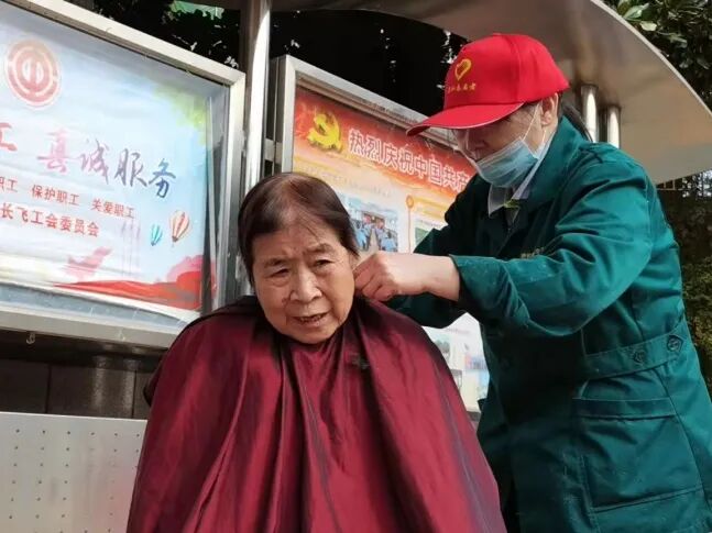 当然更少不了我们剪发技术精湛的护理员,为街坊们剪一个清爽的发型。